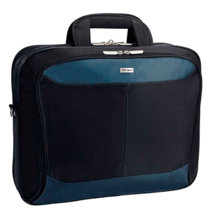 Saber másMaletín para portátil, Targus, hasta 17"-18", poliéster, caracasa rígida reforzada, asa tipo bandolera, correa velcro para portátil, negro con detalles en rojo, 800gr.